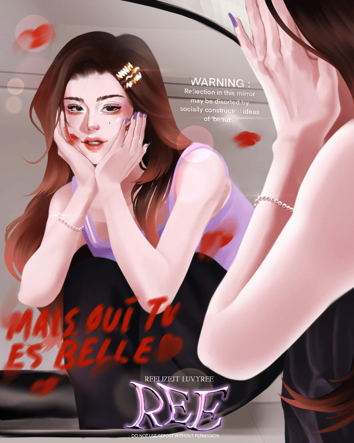 Exhibition that was held in South Kalimantan. I’m using my original character, Vega Brescha as my muse in this piece of work.“Mais oui tu es belle” is a french phrase that simply means “you look just fine”. I wanted to share our experience as a woman who lived every day under what-so-we-called beauty standards. We all know that a lot of us lost a lot including ourselves just to fulfill that standards so I wanted to remind those who have seen this work that you don’t need to fulfill anything,